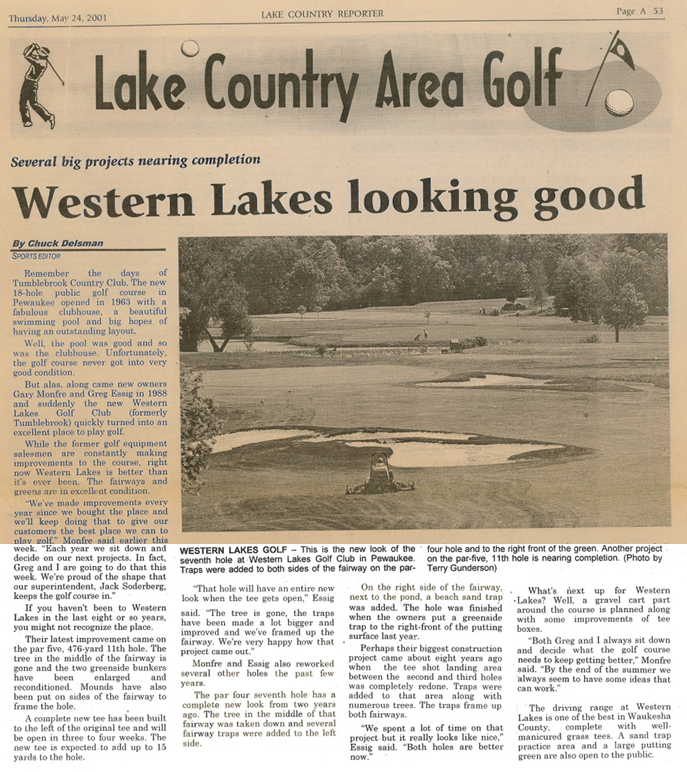 From course updates to plane crashes, Western Lakes Golf Club has been in the news numerous times over its 35 years serving local golfers. Click each article to read more!